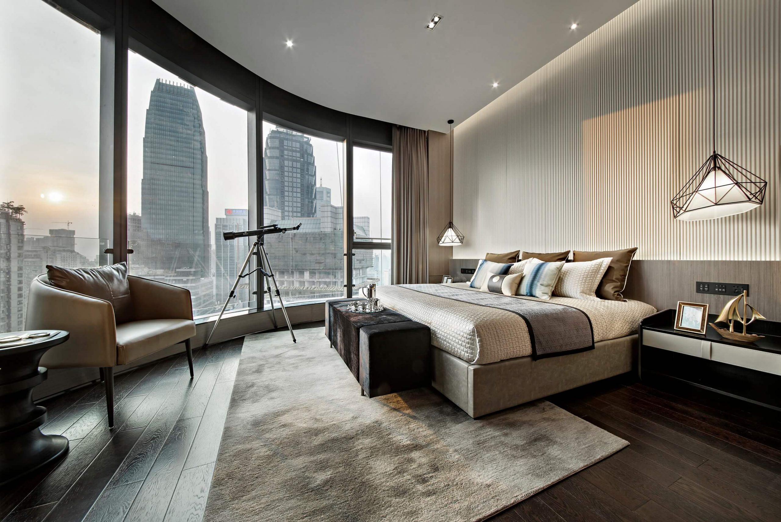 單位客飯廳較長,令陽光未能穿透整個空間,設計師特別利用燈槽,一方面平衡光線,另一方面營造簡潔風格。為免單位過分單調,設計師透過運用冷色作為主調,並配上強烈色彩的設計師傢俱,貫設出時尚型格的一面。