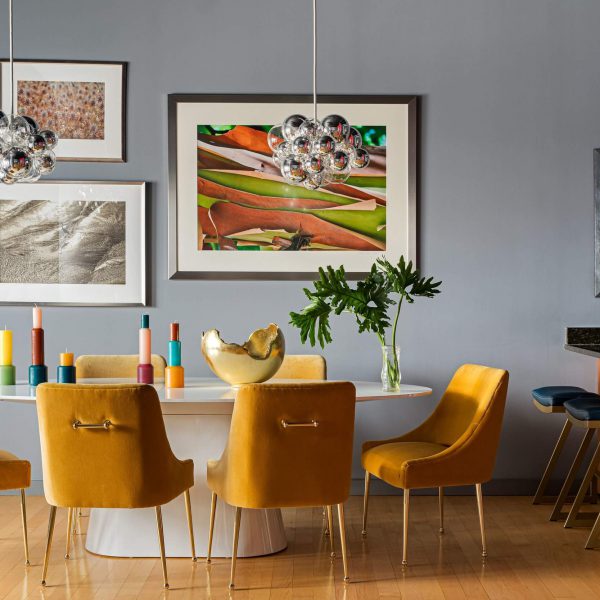 單位客飯廳較長,令陽光未能穿透整個空間,設計師特別利用燈槽,一方面平衡光線,另一方面營造簡潔風格。為免單位過分單調,設計師透過運用冷色作為主調,並配上強烈色彩的設計師傢俱,貫設出時尚型格的一面。